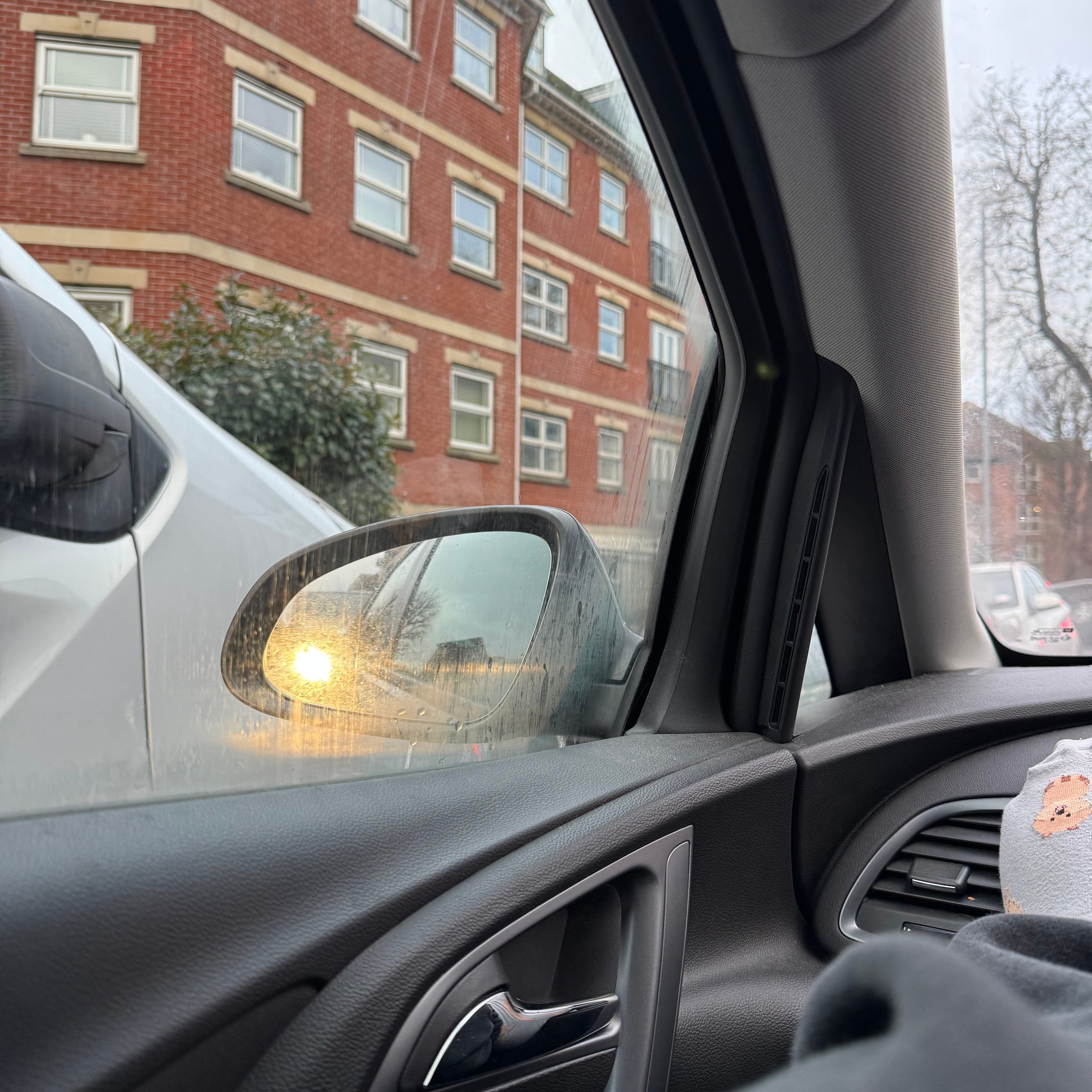 I took this while my Mum and I were driving through town, on my way to therapy. The weather was miserable but it was kind of nice to be out, having been in a blanket burrito of depression since the New Year. And yes, those are Pomeranians on my socks.