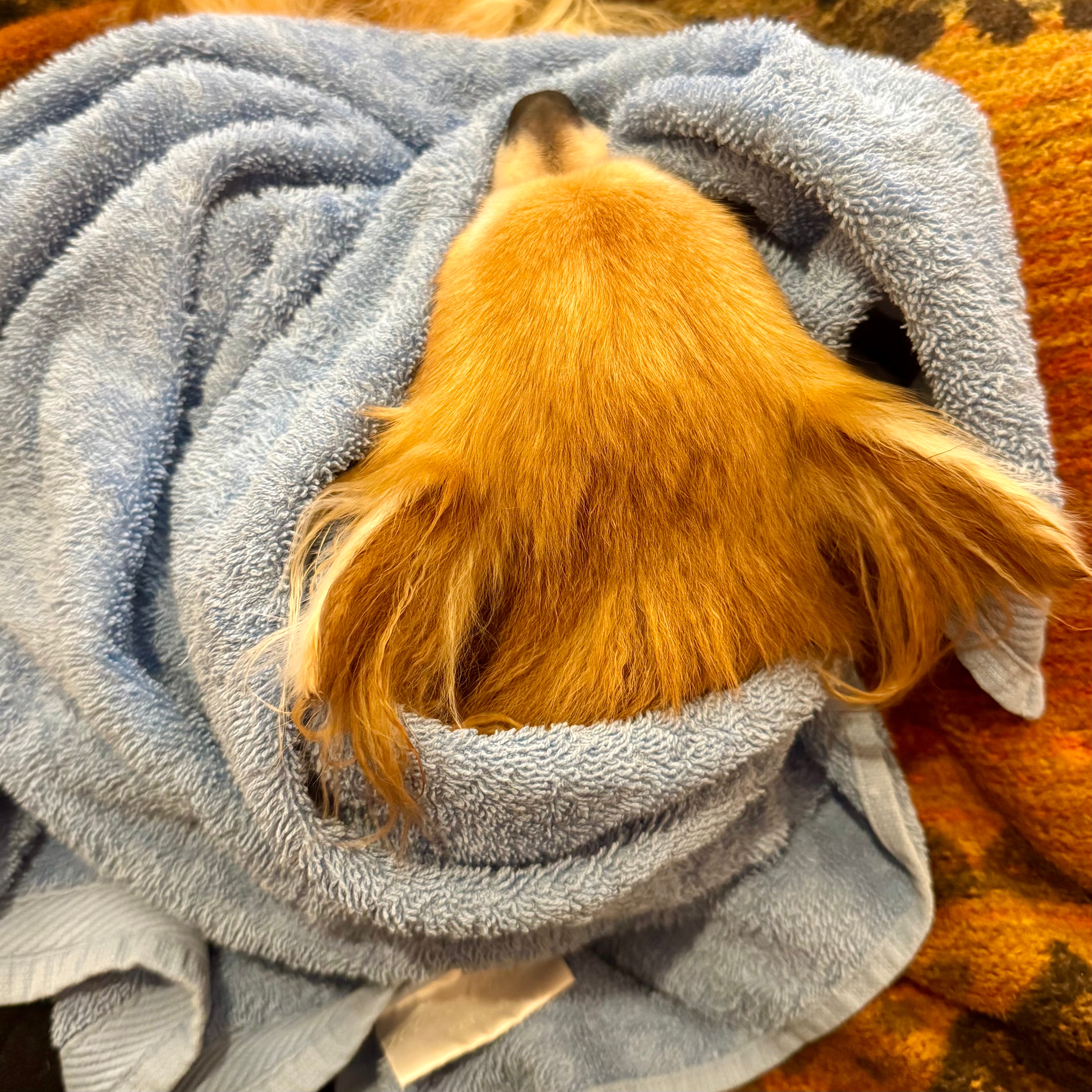 Izzy doesn’t hate being showers but she really doesn’t enjoy drying off, especially in the colder months. She was particularly cranky after this shower for some reason so I made space for her in my lap, wrapped a towel around her, and slowly stroked her and dried her off gently. This makes her sound so high maintenance, which is pretty funny because that’s really not the case as a general rule. She just really, really doesn’t like being wet.